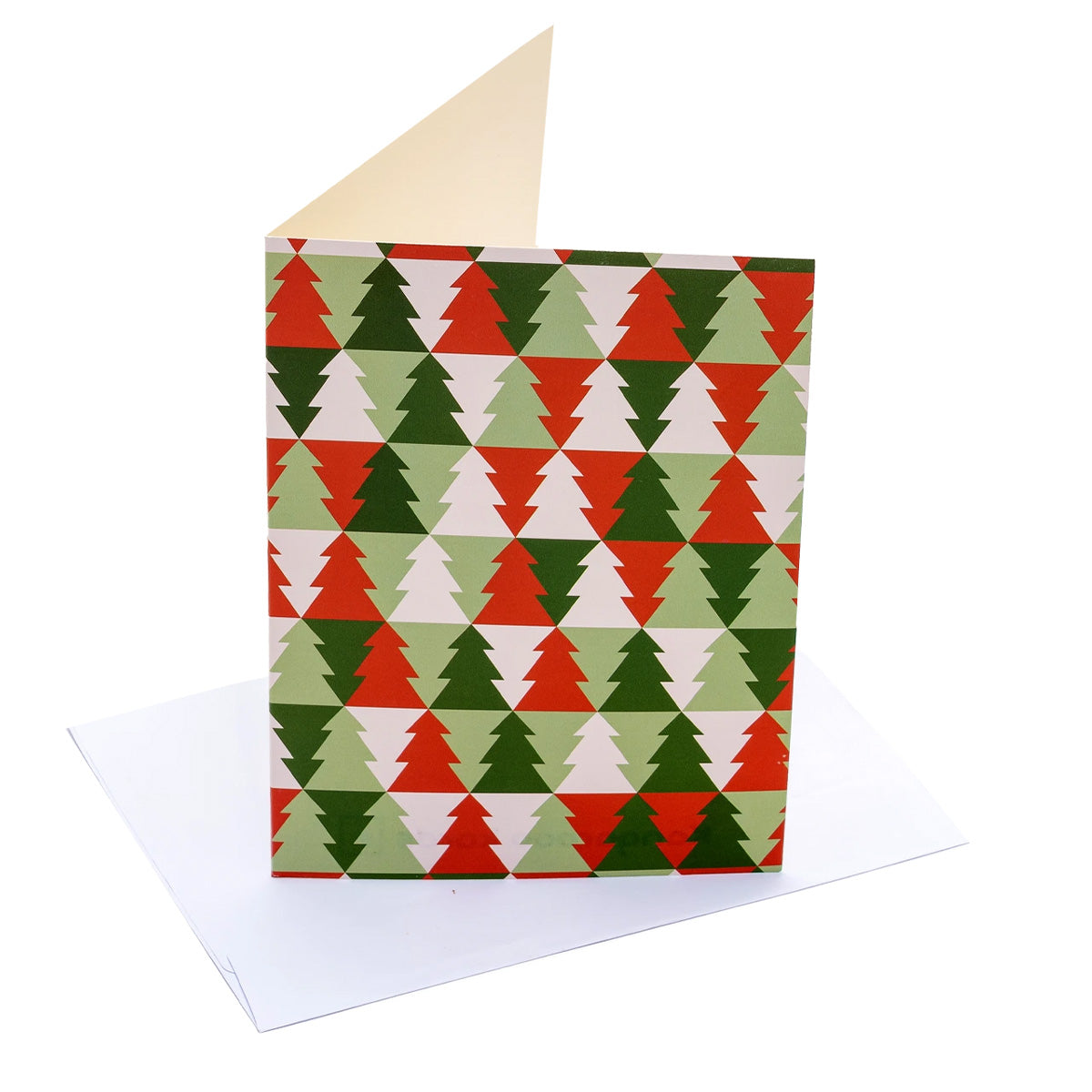 • Holiday-Ready Pattern: Christmas tree houndstooth design in festive red, green, and cream.